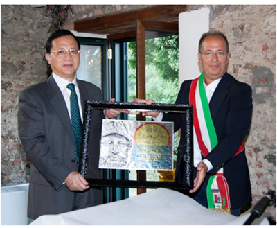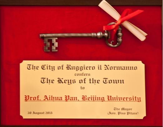 歐洲議會議員、意大利卡拉布裏亞大區主席尼斯提克(Nistico)緻辭說,潘愛華教授在他們心目中,與伯裏克利獎杯設計寓意一樣,像是初升的太陽,光芒四射,同時光耀中國和卡拉布裏亞區,将中國和意大利緊密的連接在一起。潘總也因此榮獲魯傑羅(Ruggiero)市“榮譽市民”,并頒發證章和“金鑰匙”。