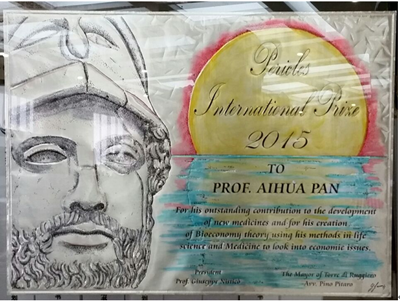 日前,北大未名集團和我公司董事長、北京大學教授潘愛華博士,在意大利卡坦紮羅省魯傑羅市獲頒2015年伯裏克利國際大獎(Pericles International Prize),以表彰其在新藥研發的傑出貢獻,以及他運用生命科學和醫學的方法研究經濟問題所創立的生物經濟學理論。(For his outstanding contribution to the development of new medicine and for his creation of bioeconomy theory using his methods in life science and Medicine to look into economic issues.)。