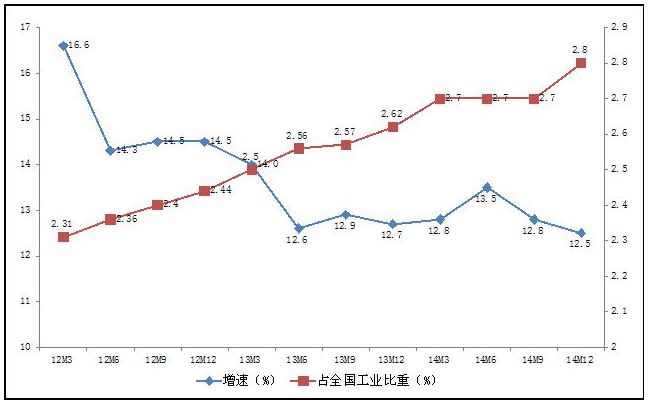 (一)增加值增速居工業行業前列